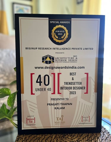"Best and Trendsetter interior designer of the year 2023". under "40 under 40" category for the year 2023