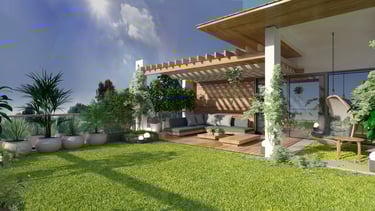 The residence features four bedrooms and covers a remarkable area of 6,585 square feet distributed across three floors. Its design incorporates a minimalist yet opulent entrance lobby and foyer, a spacious double-height living, dining, and powder room, as well as a sophisticated and contemporary kitchen with a breakfast counter. Additionally, it boasts a verdant terrace garden and an outdoor patio area, enhancing its overall appeal and functionality.