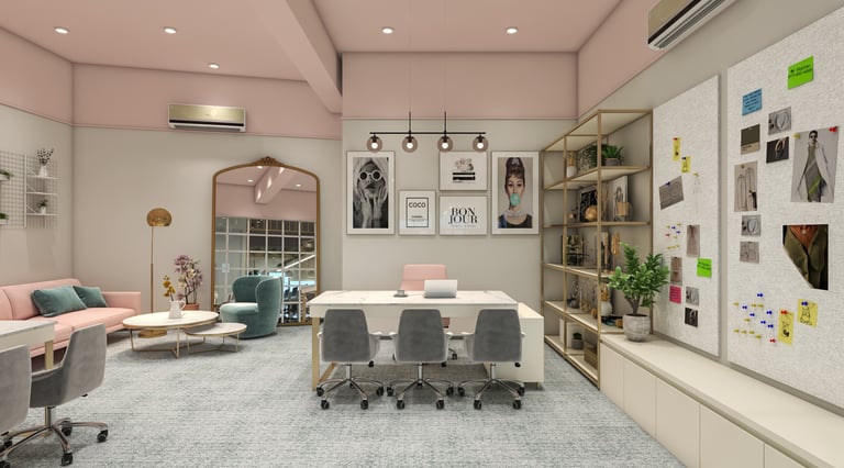 Step into the chic realm of our fashion designer's workspace, where modernity intertwines with sophistication, welcoming a fusion of creativity and elegance.Nestled centrally within the bustling city, this intimate enclave epitomises refined taste and contemporary sensibilities.